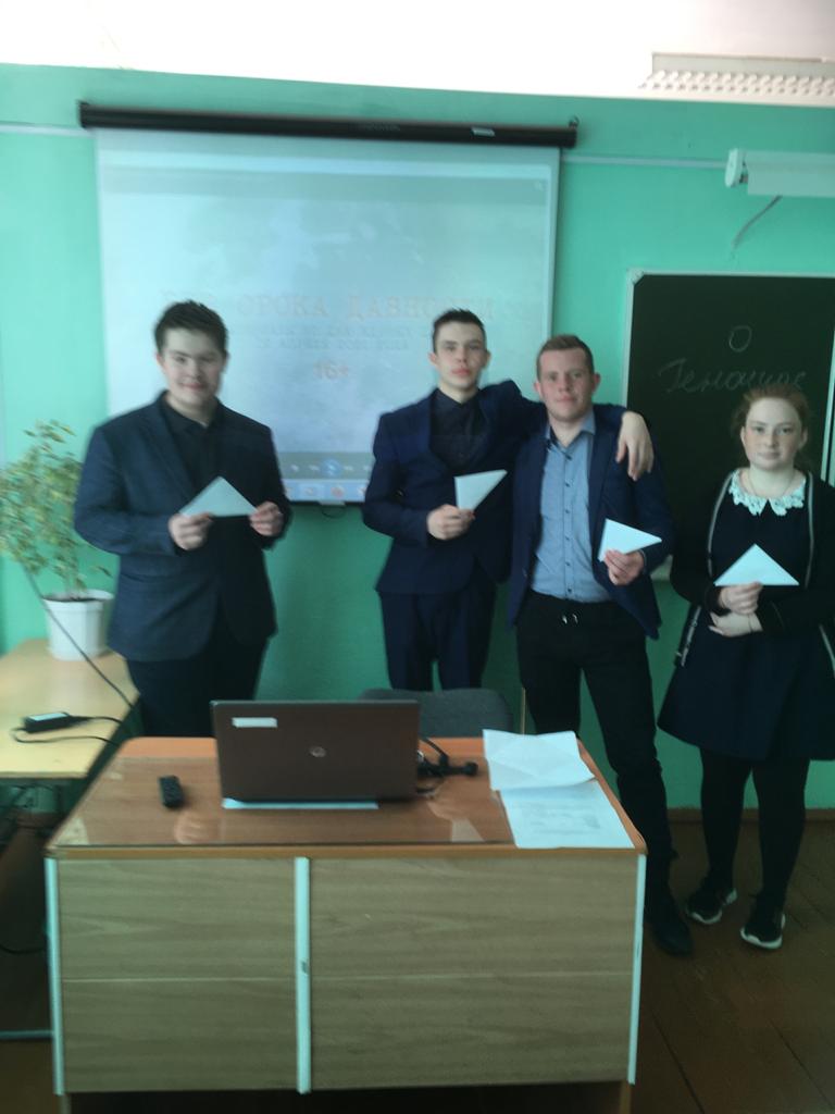 Учащиеся познакомились с видеофильмом "Без срока давности", затем написали Письма в будущее «Нельзя забыть» - послания самому себе и своим потомкам в форме треугольного (военного) письма, в котором выразили личное восприятие о преступлениях нацистов в отношении мирного советского населения.